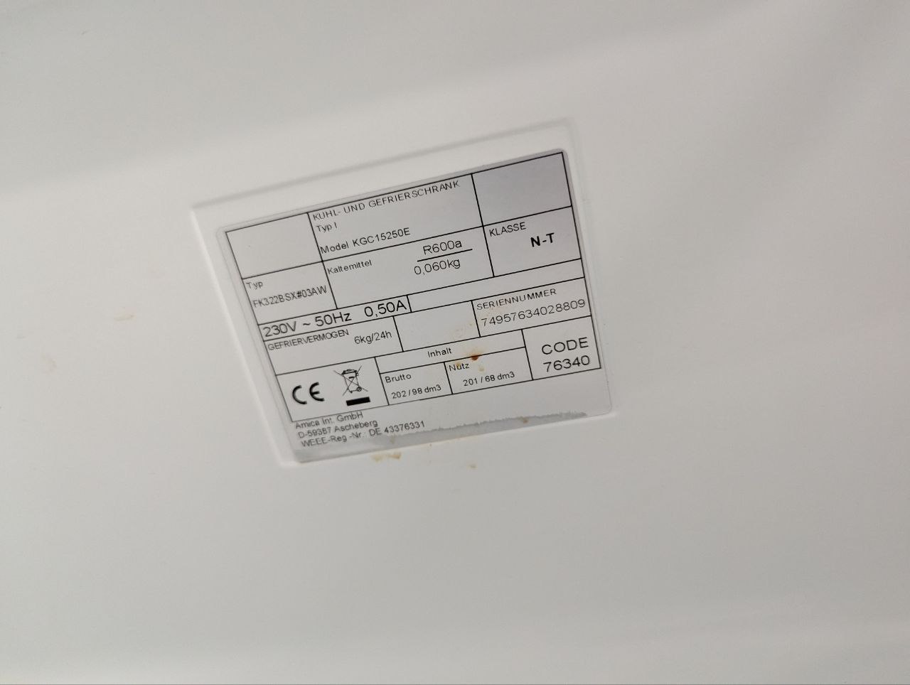 Модель: Amica KGC15250E