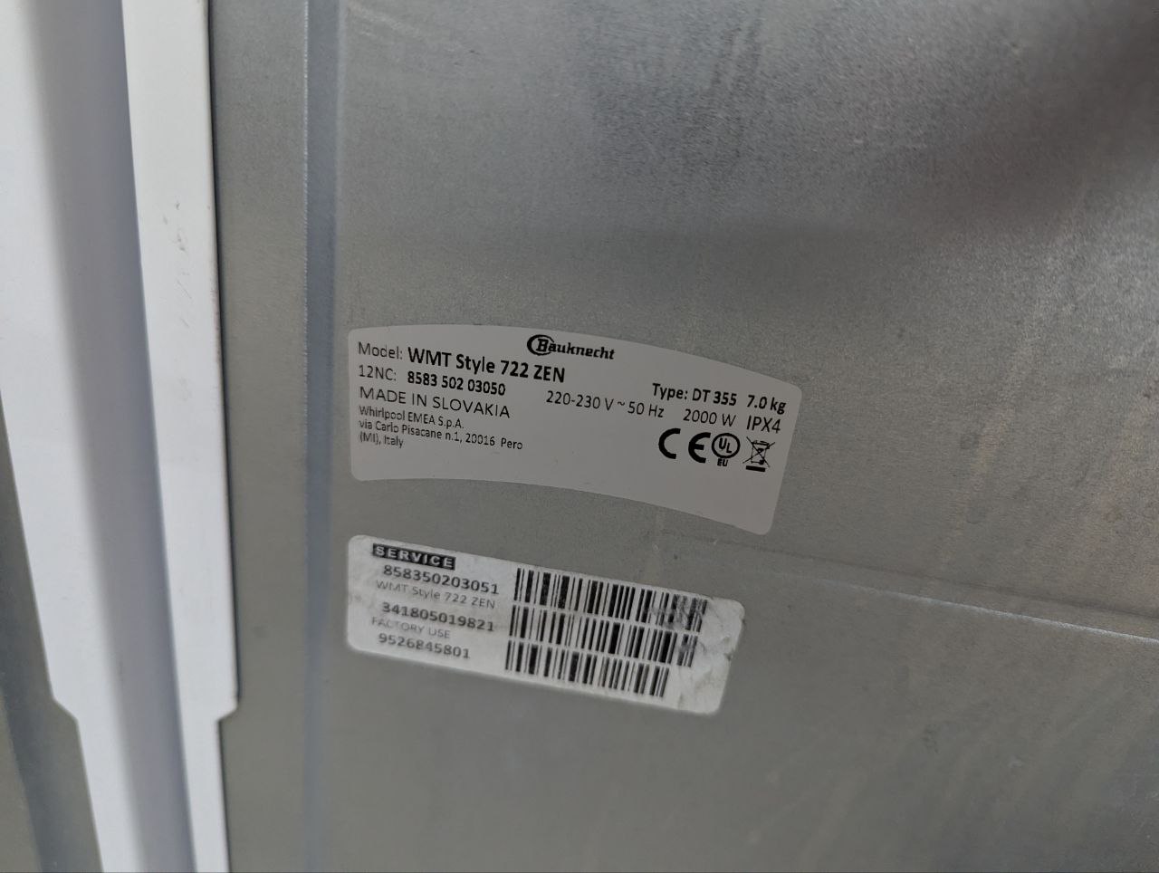 Тип: окремостояча пральна машина, вертикальне завантаження