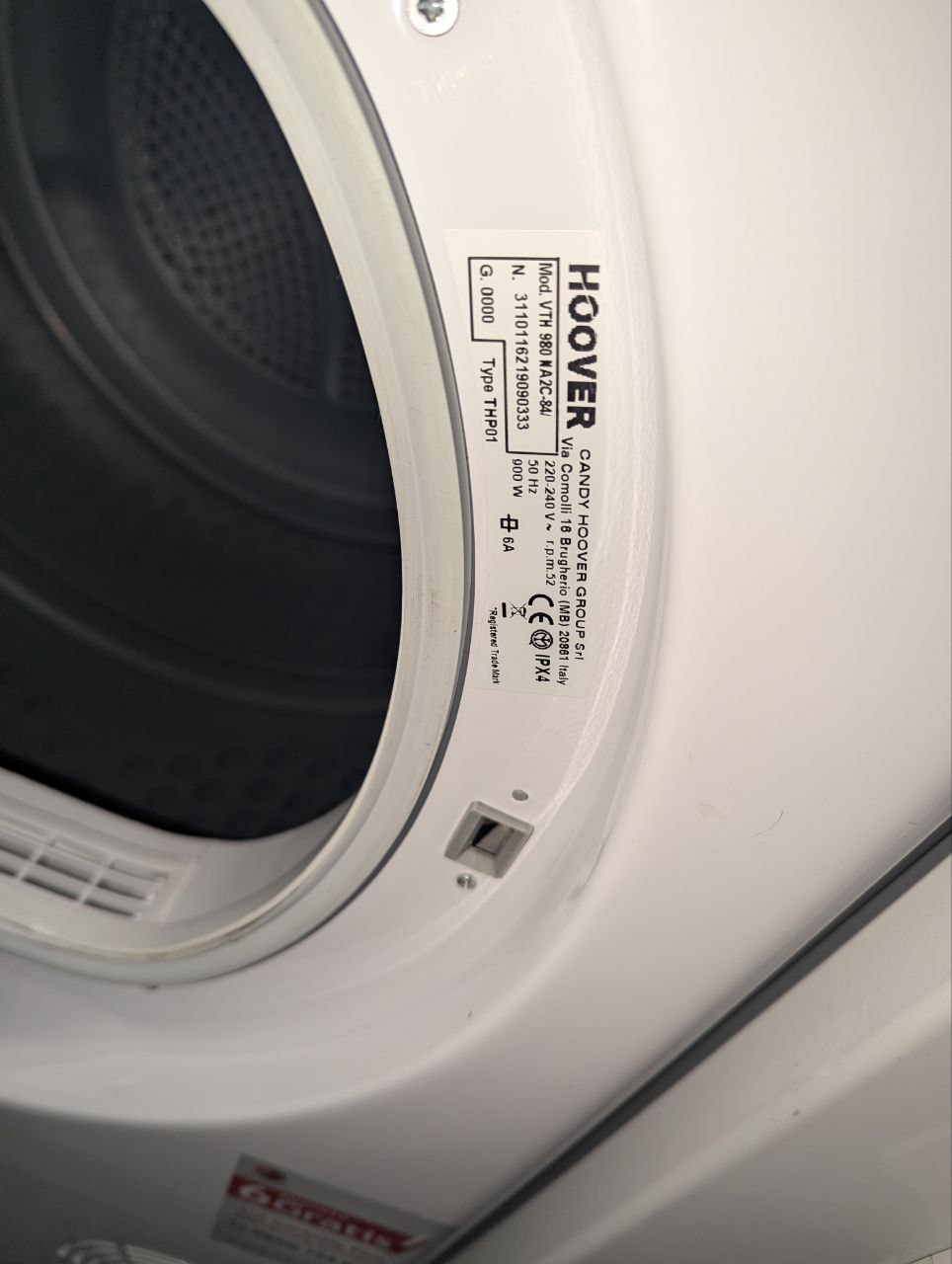Сушильна машина hoover vth980na2c-84 8кг б/в Тепловий насос