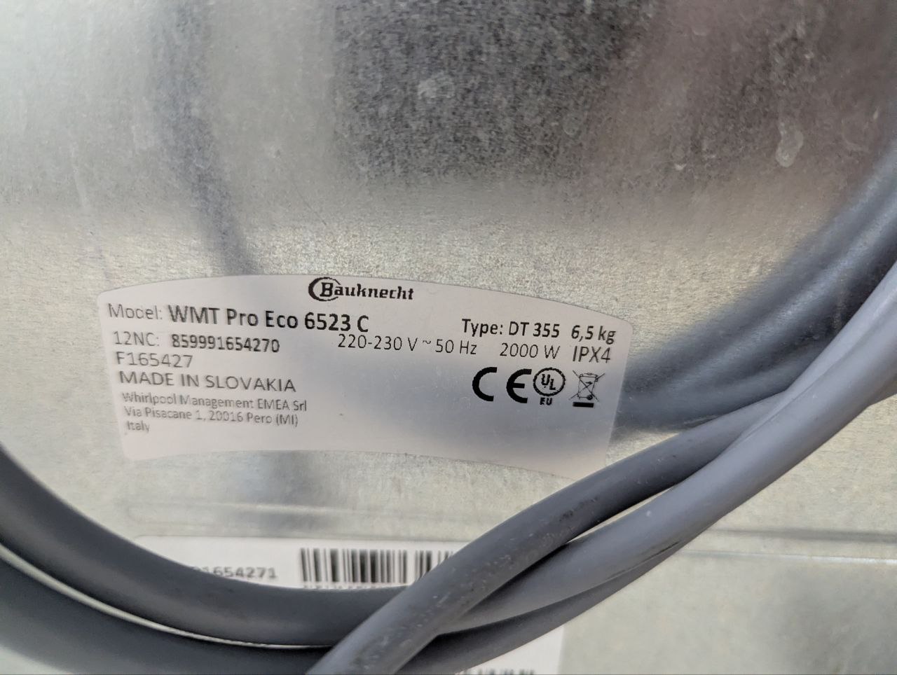 Пральна машина Bauknecht wmtproeco6523c 6,5кг б/в