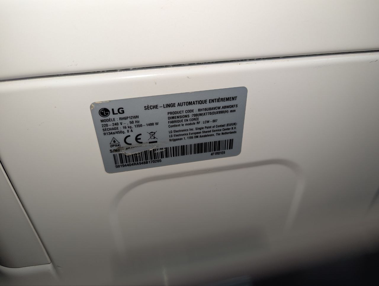 Професійна сушильна машина lg rh6p12wh на 16кг